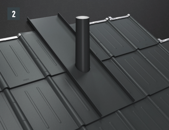 Se la posizione della penetrazione è prestabilita e per questo motivo non è possibile usare la conversa, si possono realizzare tubi passanti per mezzo di una conversa da aggraffare. Le converse sono adatte per tubi passanti di Ø 80-125 mm.
