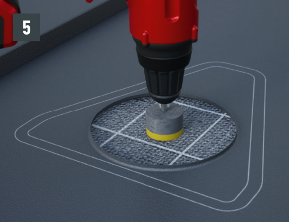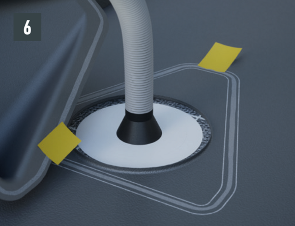 • Praticare un foro al centro, incollare la guarnizione per tubi e far passare il tubo protettivo attraverso tutti gli strati del tetto fino all’interno (Fig. 5).