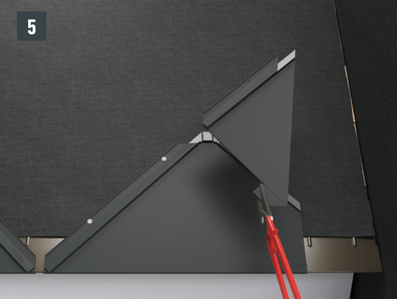 • Piegare l'aggraffatura laterale all'estremità superiore dell'elemento posteriore verso l'esterno (fig. 5).
