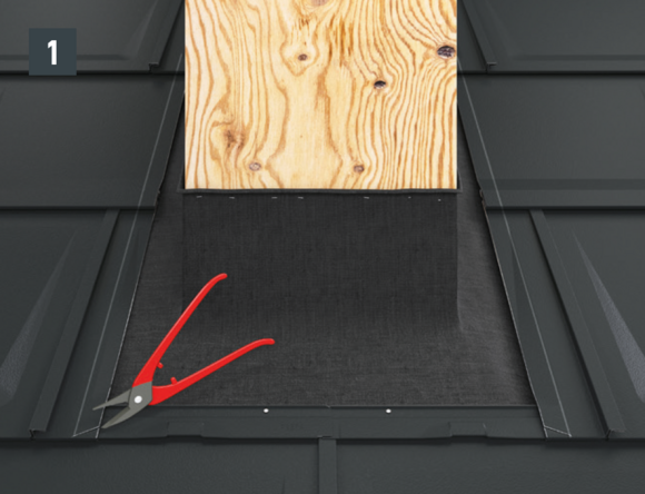 La ripiegatura della copertura rispetto alle aggraffature laterali è determinata dalla conversa. Pertanto, posizionare l'elemento anteriore e quello posteriore contro il lucernario e segnare la posizione del bordo ripiegato.