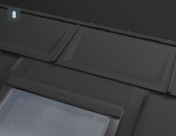 • La fila successiva di elementi di copertura può quindi essere coperta su tutta la larghezza (fig. 8).