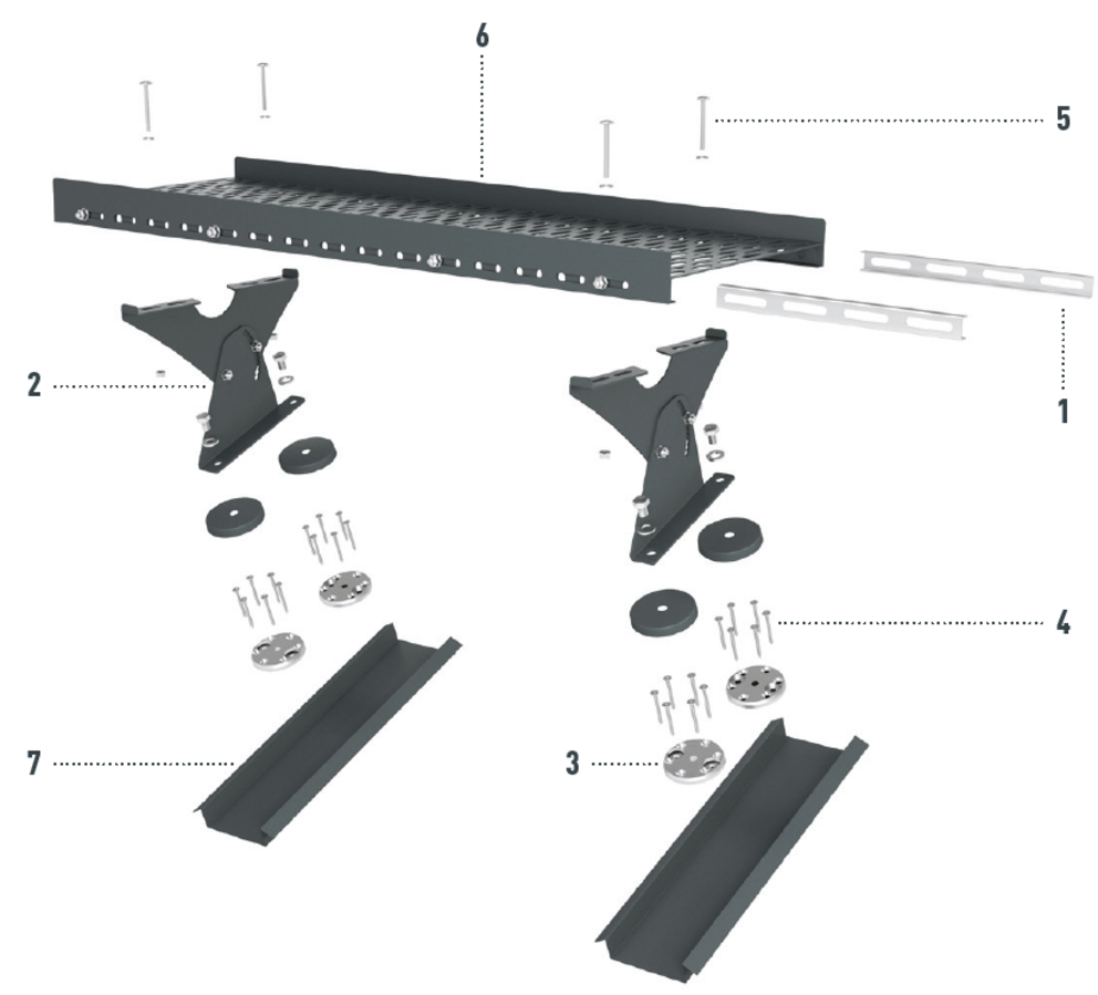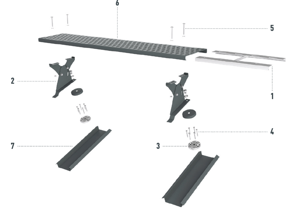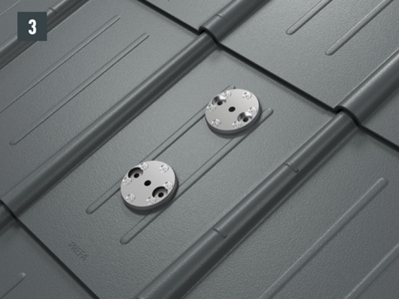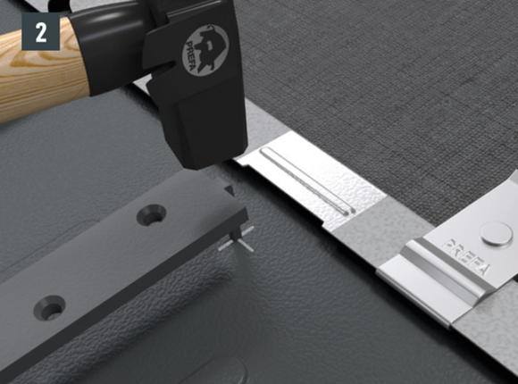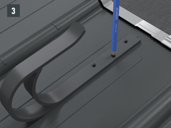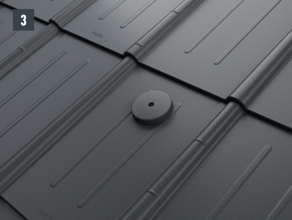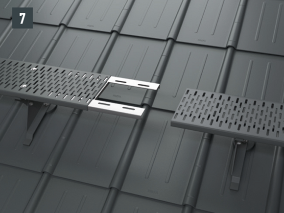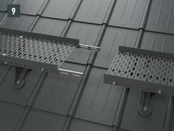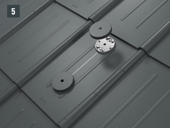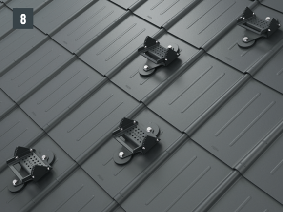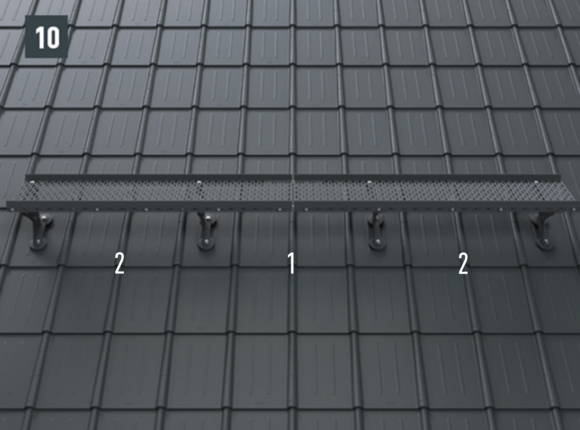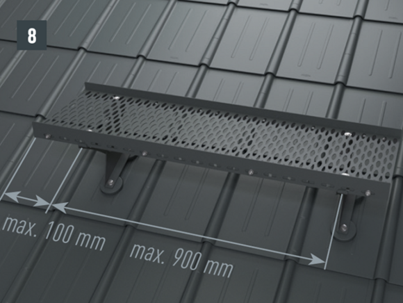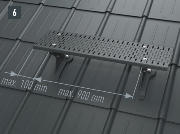 Il prerequisito di base è un sistema di copertura PREFA installato secondo le norme vigenti/gli standard di settore su un tavolato di min. 24 mm di spessore e una sottostruttura staticamente stabile. La distanza tra le travi deve essere max. 1.000 mm. Le staffe per griglie pedonabili devono essere montate sul tavolato con i piedini in dotazione. |