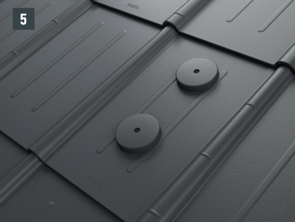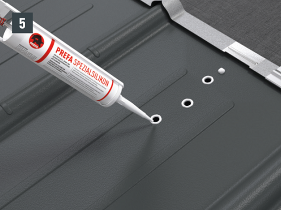 4 Eventualmente sottopiastra (con scaglie e scandole PREFA sempre necessaria) |