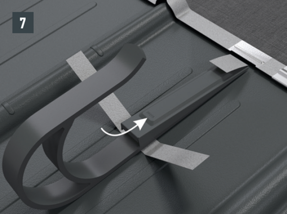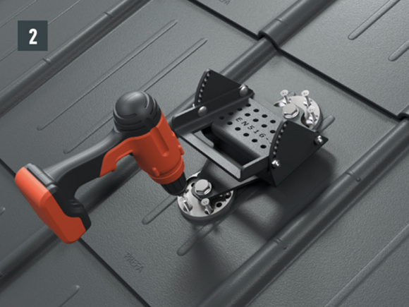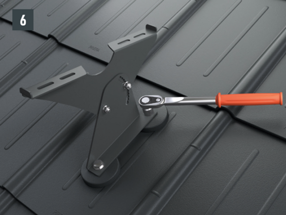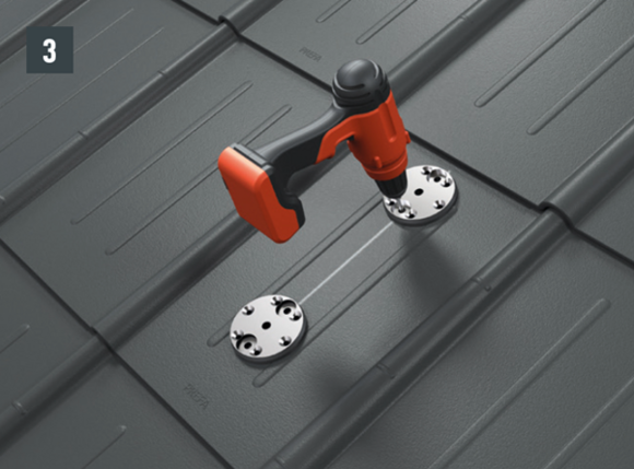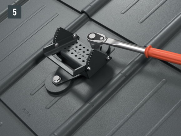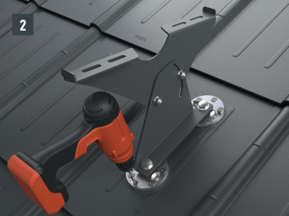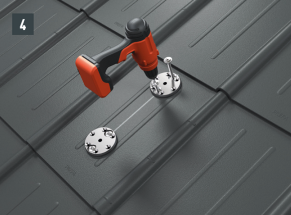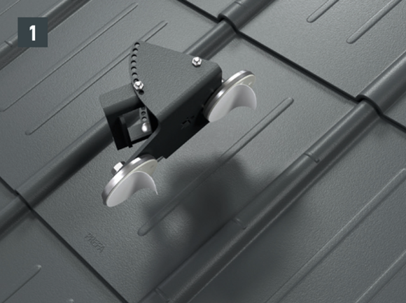 Il sistema di staffe per griglie pedonabili può essere utilizzato solo per l'accesso ai tetti e non come punto di ancoraggio per i dispositivi di protezione individuale o per tirare su dei carichi. La staffa per griglia pedonabile è conforme alla norma EN 516, classe K1, tipo A. Adatta per tetti con una pendenza di 12-55°.