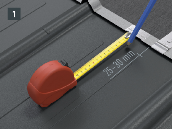 Requisito di base per un montaggio a regola d'arte sono un sistema di copertura PREFA installato secondo le norme vigenti/gli standard di settore e una sottostruttura in legno strutturalmente sana (puntone min. 8/8 cm con tavolato pieno di min. 24 mm, per l'isolamento all'estradosso min. 10 × 14 cm). |