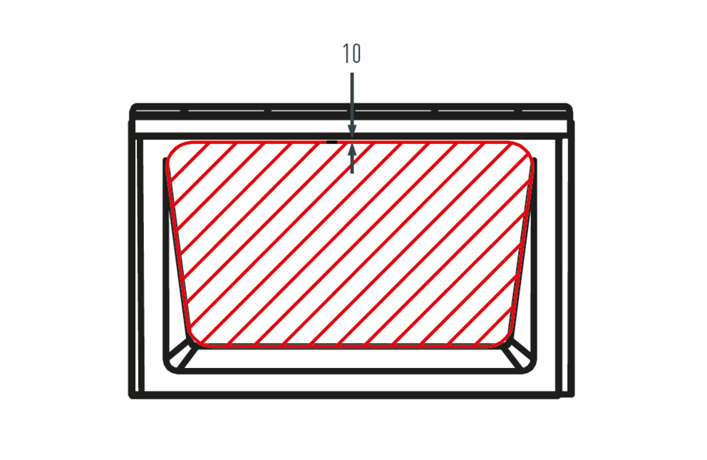 Durante il montaggio degli accessori per il tetto, fare attenzione alla zona di posa consentita sulle tegole R.16. La figura seguente mostra la zona di posa degli accessori sui piedini. Per altri accessori possono essere definite zone di posa diverse.