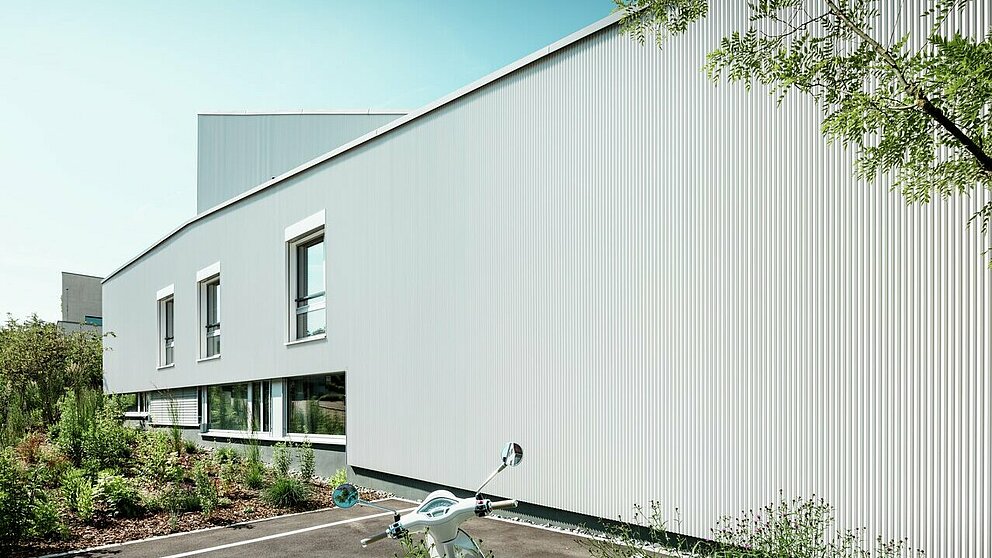 Per la facciata di 1.340 metri quadrati era stata inizialmente prevista una lamiera di acciaio prefabbricata, fissata in modo visibile e piegata a zig-zag. «Il mio punto di vista era: questa architettura richiede una soluzione esteticamente pulita con fissaggi non visibili, come quelli offerti dal profilo a zeta di PREFA. Questo è disponibile in tutti i colori verniciati a polvere o in alluminio naturale, che può essere anodizzato“, racconta Roger, felice di aver convinto gli investitori a scegliere questa soluzione pulita. ”Ci siamo occupati della progettazione della facciata e abbiamo realizzato l'intera struttura, dall'isolamento termico alla ventilazione posteriore, e infine abbiamo montato i profili a zeta, grazie al sistema Rogger, con una tolleranza praticamente nulla".