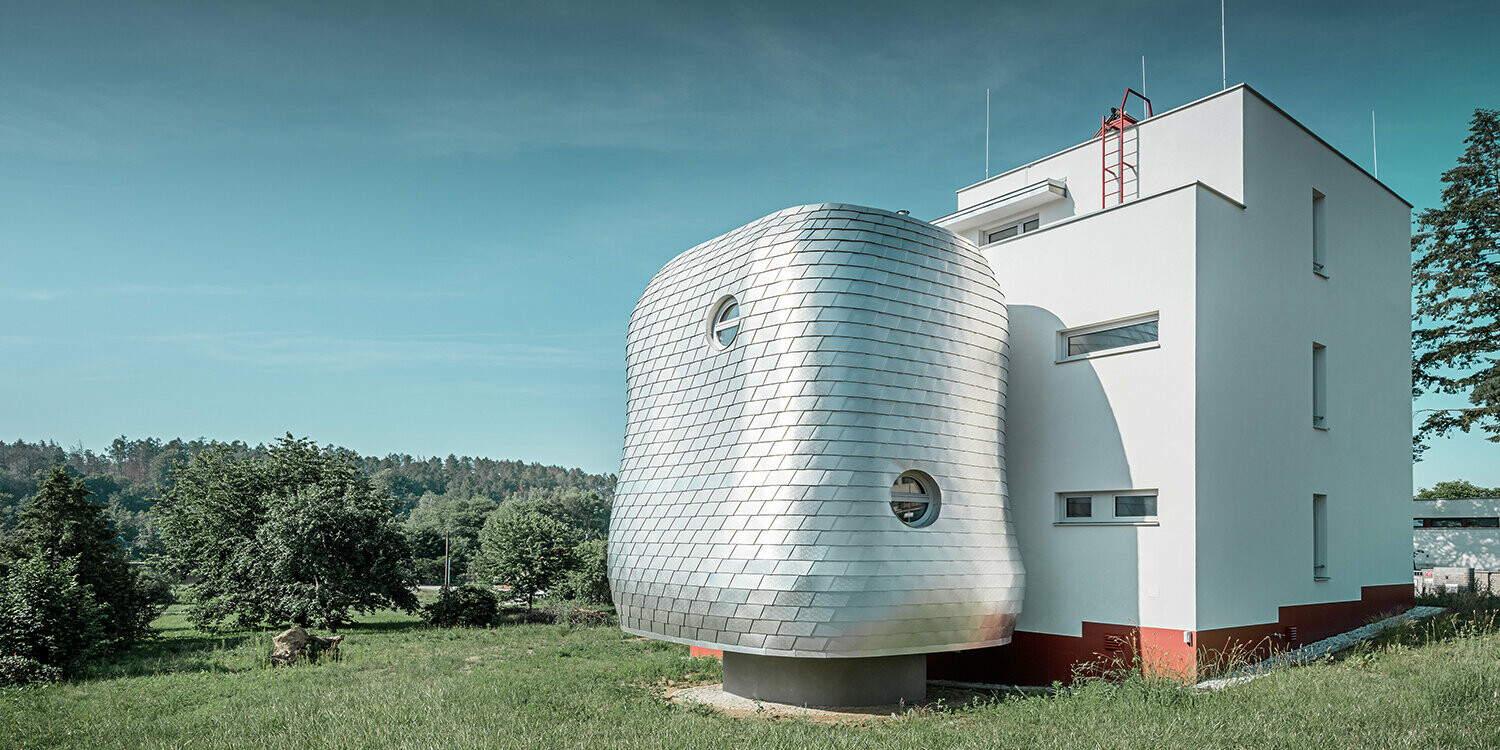 L’edificio è stato probabilmente costruito negli anni '30 da un costruttore edile locale. Ora è stato ampliato con una costruzione annessa a forma di pera. Si tratta di una costruzione in legno in cui sono ospitate le camere da letto. Per formare in modo ideale la facciata arrotondata sono state utilizzate le scandole per facciata PREFA in alluminio naturale.