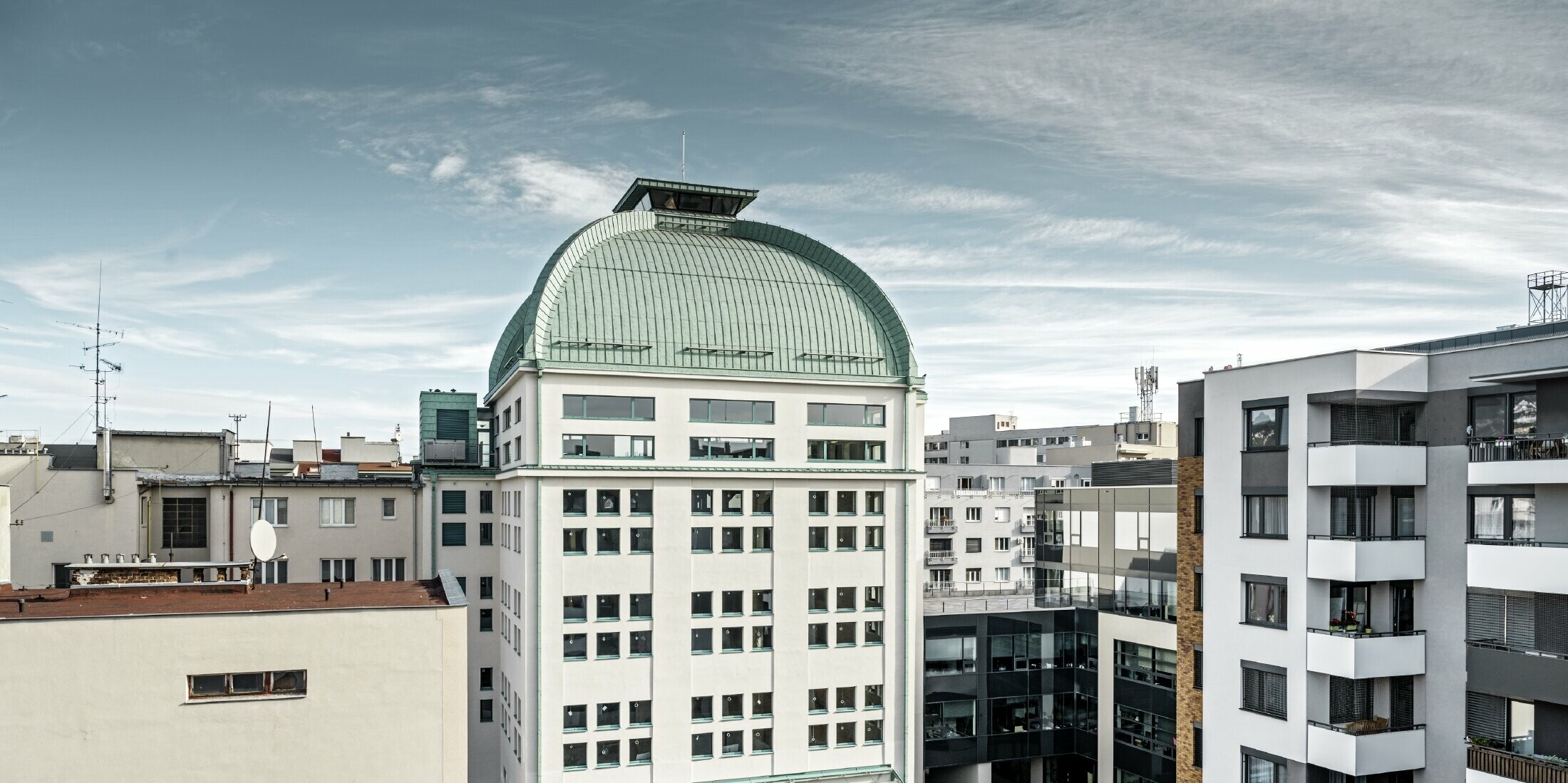 È stato possibile conservare l'edificio per uffici Spilka quasi nel cuore di Bratislava come un bellissimo monumento culturale nazionale grazie al buon lavoro di MAJA-klampiarstvo, s.r.o. e al PREFALZ in P.10 patina verde.